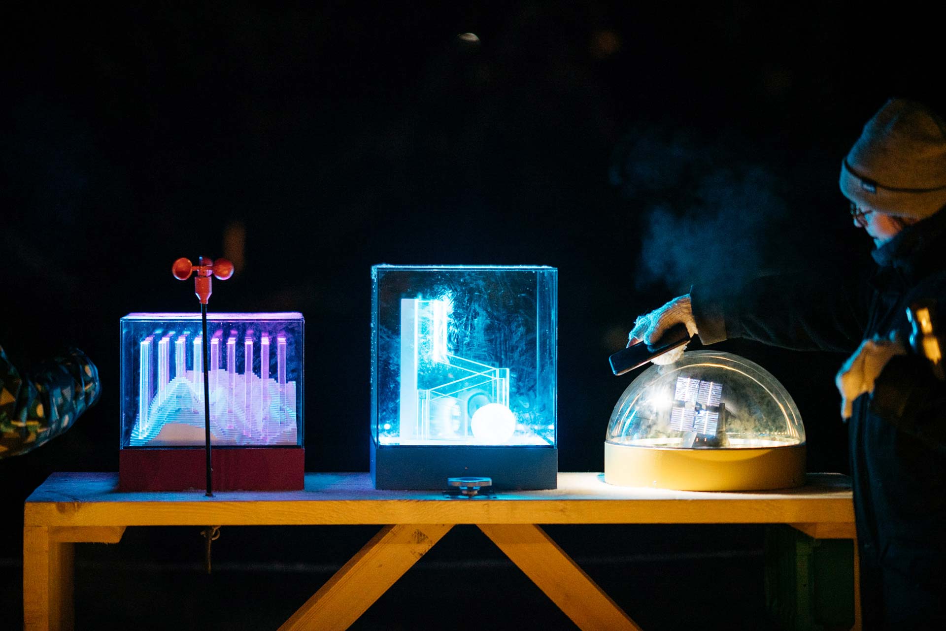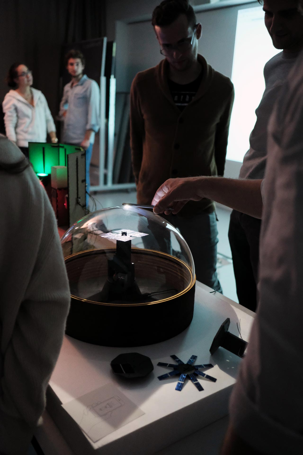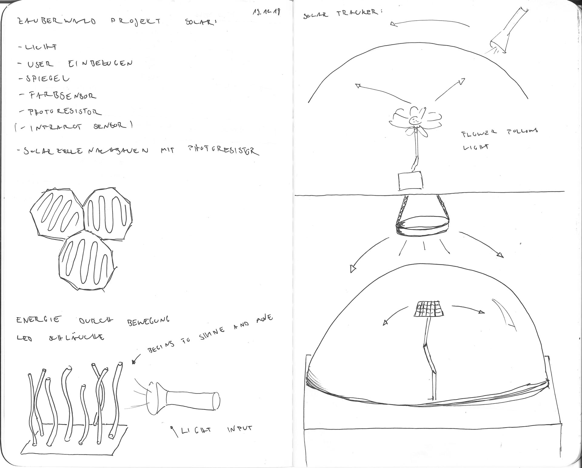 This project was part of the Physical Computing & Data Literacy and Visualisation course and was supported by Energiewerke Zürich (EWZ). The goal was to create a series of light installations for Zauberwald festival 2018 in Lenzerheide, Switzerland. We were able to exhibit the entire installation at PUNKT for a second time. We have been inspired by a sunflower/solar tracker because they are known to use the sun's energy optimally by tracking their energy reference area to the sun's position during the course of the day. We tried to give our object a funny and lovely character, in which it quickly follows the light.